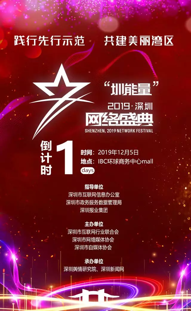 為了展示深圳2019年度優(yōu)秀網(wǎng)絡(luò)典型,釋放榜樣示范作用,弘揚網(wǎng)絡(luò)正能量,形成爭相譜寫新時代、人人傳播正能量的生動氛圍,深圳網(wǎng)絡(luò)盛典應(yīng)運而生。
