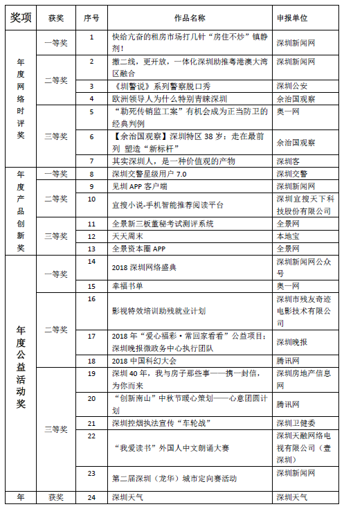 深圳年度網(wǎng)絡(luò)正能量十件大事獲獎單位