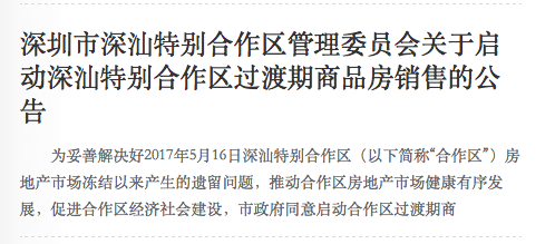 12月2日關(guān)于啟動(dòng)深汕特別合作區(qū)過渡期商品房銷售的公告發(fā)布