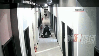 樓道的監(jiān)控正好拍下了這一幕