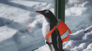 小企鵝背著書包特別興奮,目不轉睛地盯著國寶,敲治愈的!