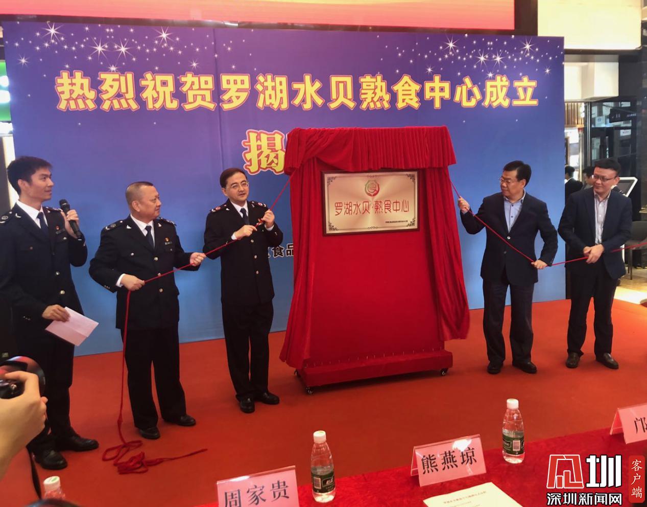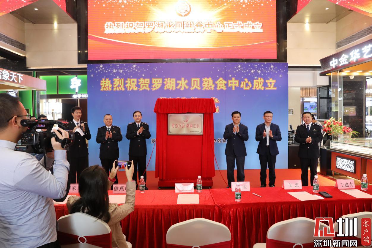 黃敏副市長、市市場監(jiān)管局局長鄺兵、羅湖區(qū)副區(qū)長文忠及深圳市市場監(jiān)管局、羅湖區(qū)政府有關(guān)負(fù)責(zé)同志為羅湖水貝熟食中心揭牌
