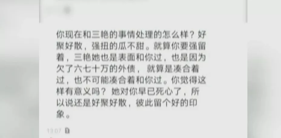 “這個(gè)陌生男的就說(shuō),讓我該離婚就離,說(shuō)她的心已經(jīng)不在我這里了,強(qiáng)扭的瓜不甜什么的?!?/p>