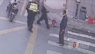 當(dāng)時(shí),就在離園門(mén)口大概15米的距離,一個(gè)醉酒的男子,手拿兩把菜刀,在這里徘徊了一會(huì),當(dāng)時(shí)朝我們校門(mén)口看了一下,看到我們校門(mén)口有兩名校衛(wèi)站在那里馬上他就慢慢往前方移動(dòng)。