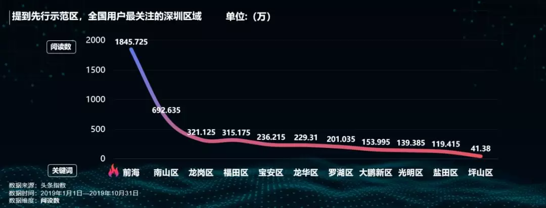 《中共中央、國務(wù)院關(guān)于支持深圳建設(shè)中國特色社會(huì)主義先行示范區(qū)的意見》(以下簡(jiǎn)稱《意見》)出臺(tái)是在8月,短短3個(gè)月不到,“先行示范區(qū)”關(guān)注度就破億,沖進(jìn)前三,足見其關(guān)注度之高。