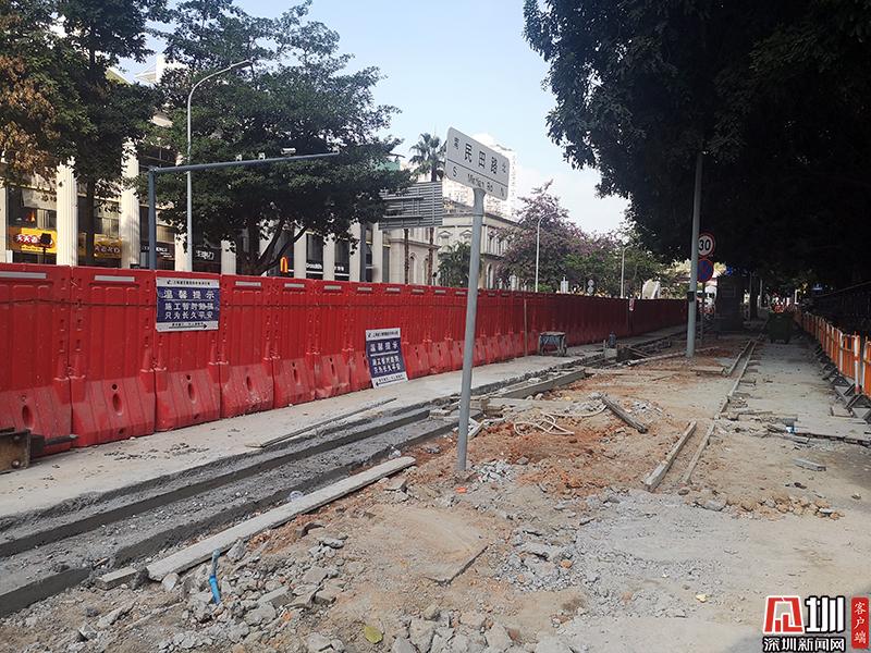 在福中三路和民田路交叉口的施工現(xiàn)場,民田路一側的人行道幾乎被全部“扒開”。