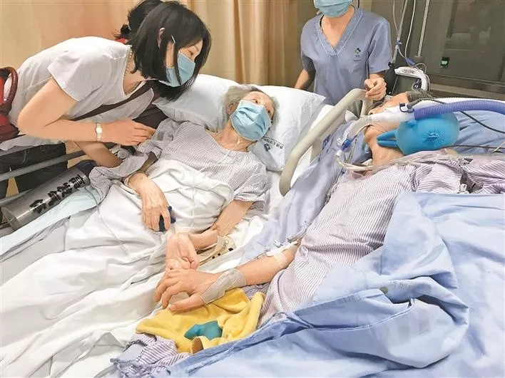 7月27日20點48分,香港大學深圳醫(yī)院的ICU病房里,兩位病重的老人的手握在了一起。在并排擺放的兩張病床上躺著的,是一對攜手恩愛57年的耄耋伉儷——高先生和彭女士。這兩位都已病重住院的老人,完成了或許是他們人生中的最后一面。這一幕,讓病床邊的許多親屬和醫(yī)務人員都淚流滿面。