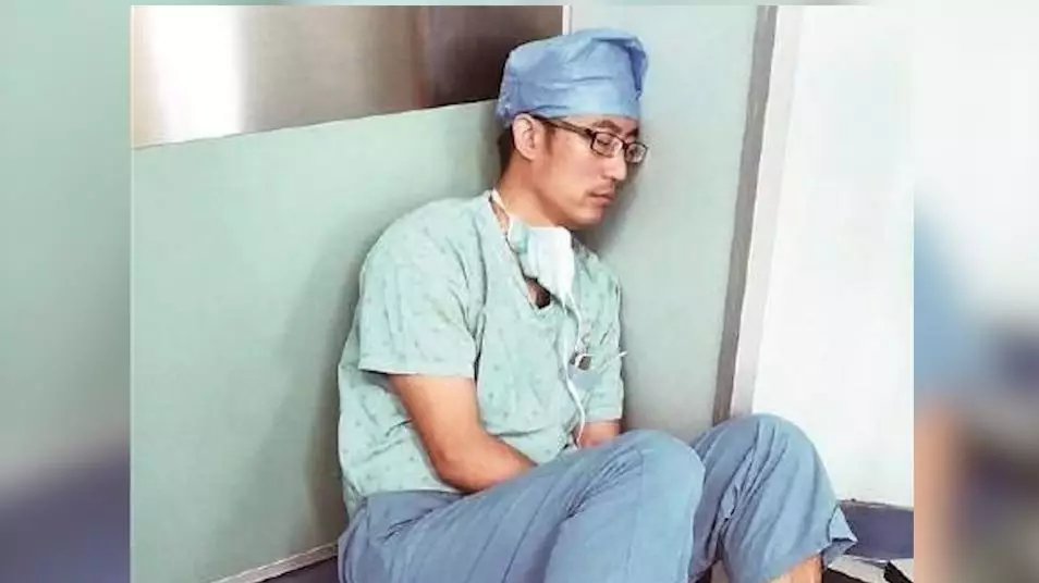 8月,深圳龍崗中心醫(yī)院骨關節(jié)科的一位醫(yī)生代宇因一張照片在網(wǎng)上走紅。圖片中,他穿著手術服,坐在手術室的地上,靠墻睡著了。
