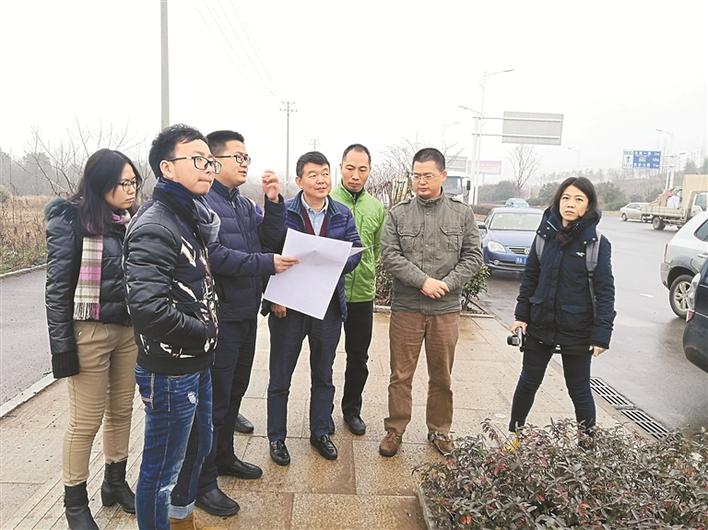 2017年12月蔡明(左四)在武漢高新大道現(xiàn)場(chǎng)查看工程進(jìn)度。