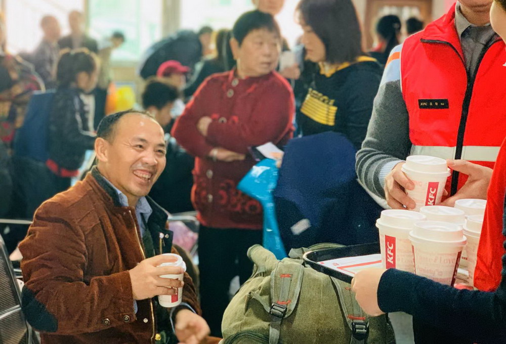 春節(jié)臨近,深圳福永汽車站迎來旅客返鄉(xiāng)的高峰。1月12日,深圳肯德基聯(lián)合福永義工聯(lián)為返鄉(xiāng)的建設者贈送1000杯愛心熱飲,將溫暖與愛帶回家。據悉,這是深圳肯德基第三年參與春運愛心贈飲活動。