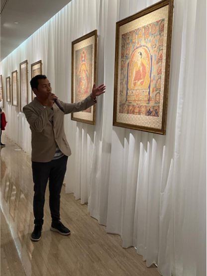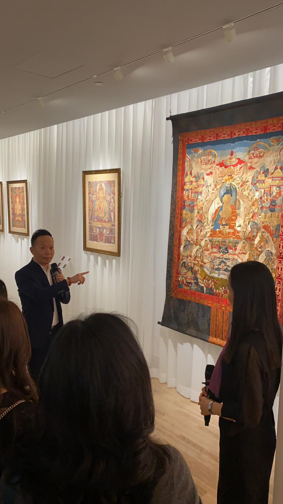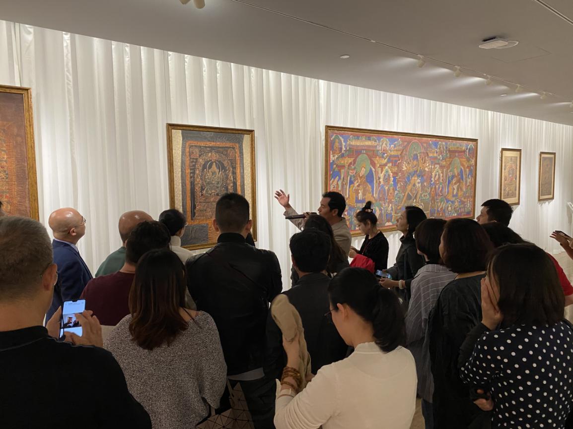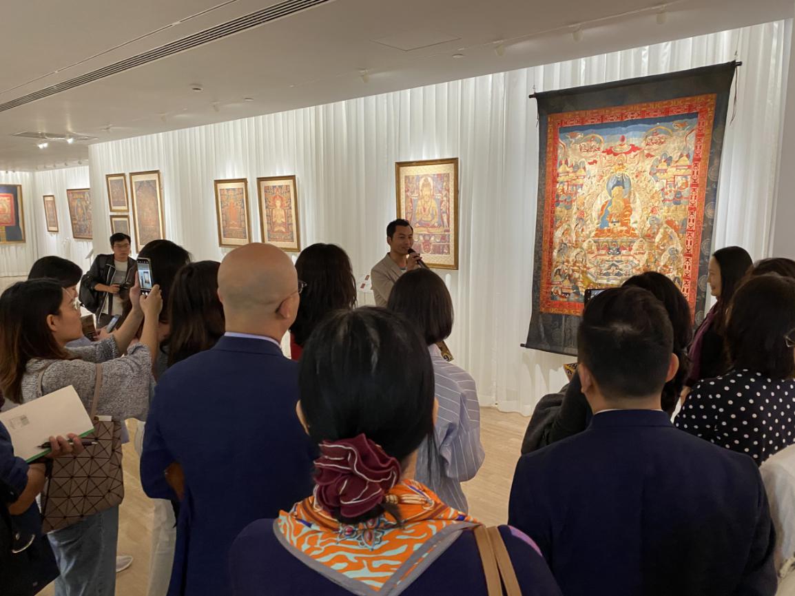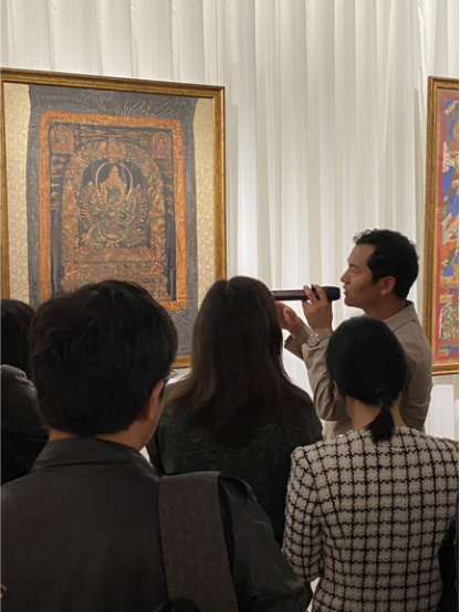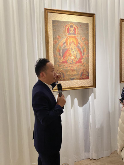 為了讓觀眾更好地了解本次展出唐卡的工藝美及其背后所蘊(yùn)含的人文價(jià)值,桂心堂主人邀請(qǐng)了布達(dá)拉宮唐卡專家——次仁占堆老師、曾長(zhǎng)期生活于蘇州的資深唐卡愛(ài)好者葉小龍,一同在1月4日的下午,給觀眾們帶來(lái)了一場(chǎng)深入淺出的導(dǎo)覽活動(dòng)。