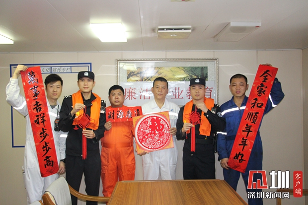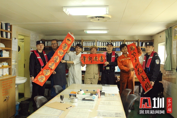 “新年好,祝你新春快樂!”1月19日,汕尾邊檢站民警帶著中國結、對聯登上候檢船舶,為即將遠航印度尼西亞的22名船員致以新春祝福,并與船員一起布置春節(jié)裝飾品。