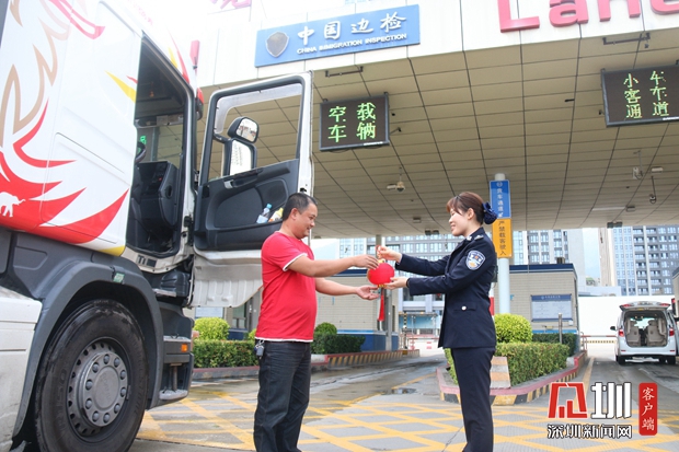 沙頭角邊檢站為大貨車司機送上春節(jié)小燈籠。