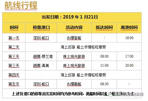 據(jù)悉,歌詩達(dá)威尼斯號(hào)郵輪1月21日16時(shí)從蛇口郵輪母港出發(fā),為6天5晚的航程,航行路線為:深圳-下龍灣(蔡蘭港)-峴港(真美)-深圳。