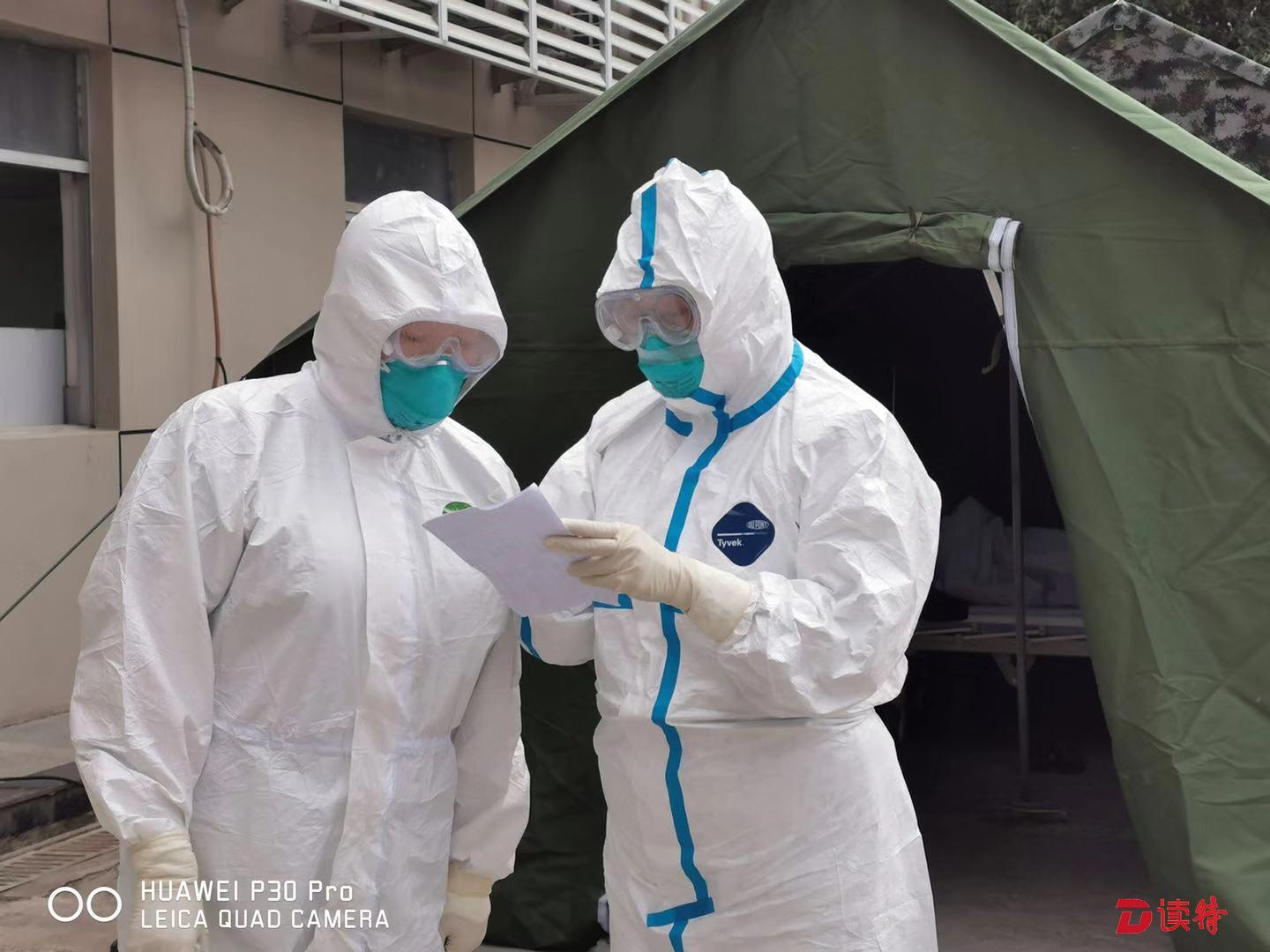 發(fā)熱門診護(hù)士在隔離觀察區(qū)進(jìn)行病情交接
