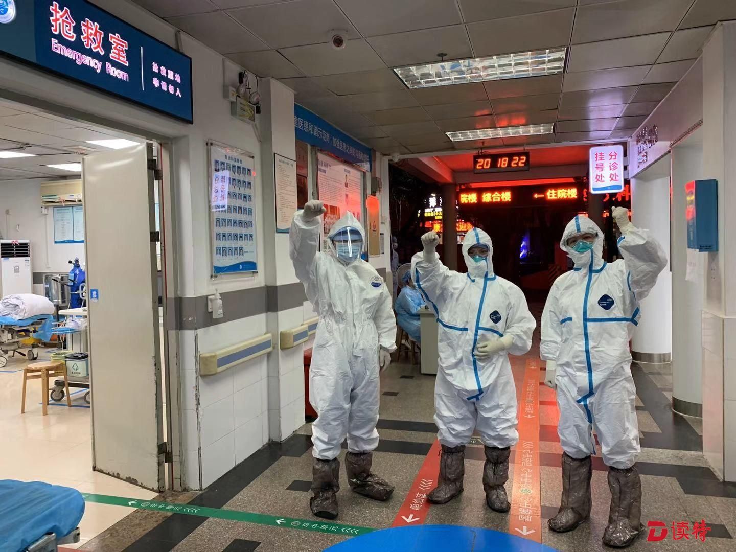 1月24日大年三十,石巖人民醫(yī)院發(fā)熱門診醫(yī)護(hù)人員在診室門口為自己加油!