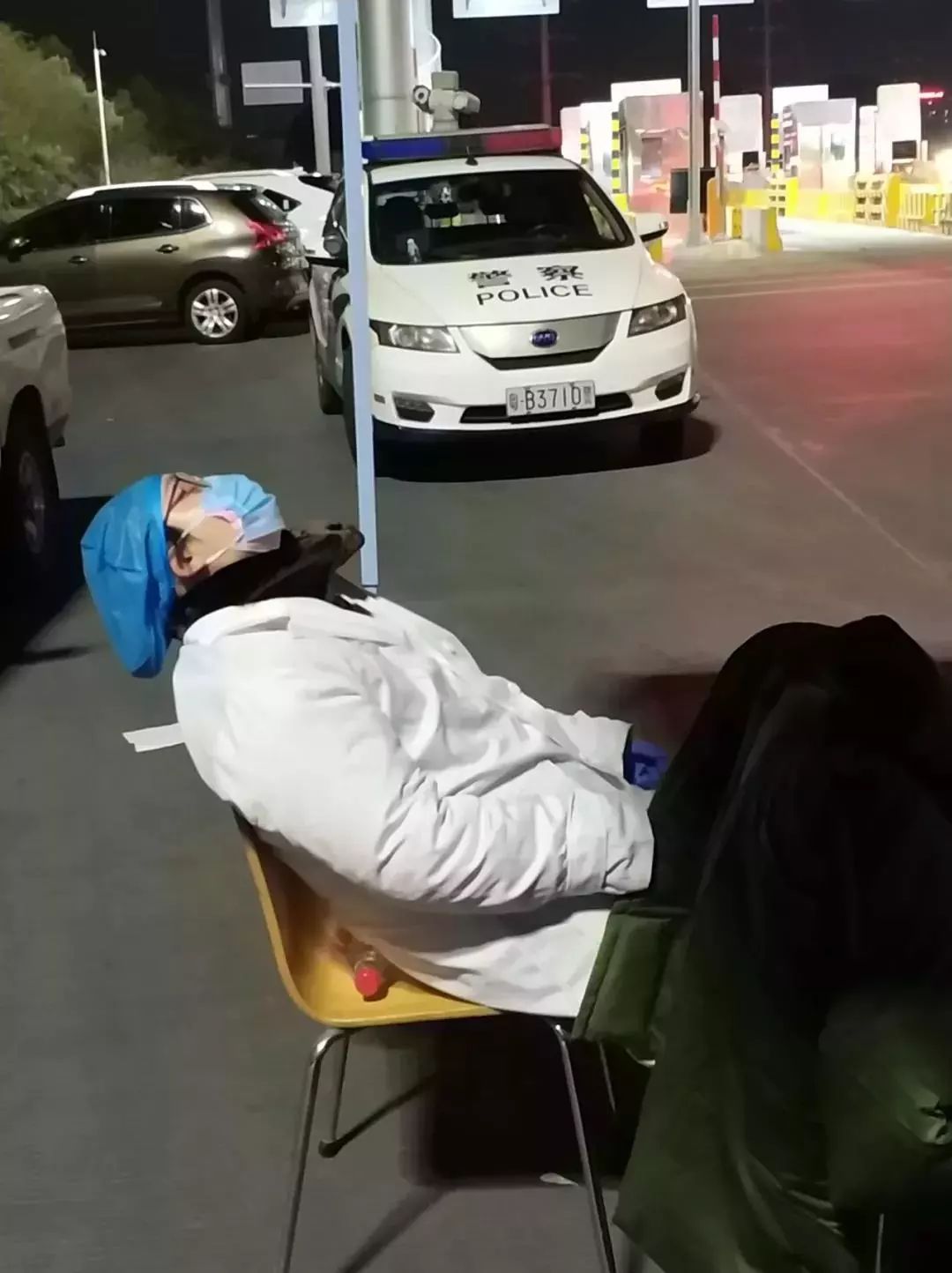 “我們采取輪班制,因高速路口車流量大,除了吃飯喝水,其余時間都在給返深人員檢測體溫?!闭掌臄z者陳偉標(biāo)說。他也是慢性病防治中心的醫(yī)生,同是這次檢疫一線的醫(yī)務(wù)人員,看到在寒夜中連續(xù)站立工作近7個小時的南月麗,疲憊地仰靠在椅子上休息,心中的觸動讓他留下了這個珍貴瞬間,也成了防控疫情一線醫(yī)務(wù)人員的真實(shí)寫照。