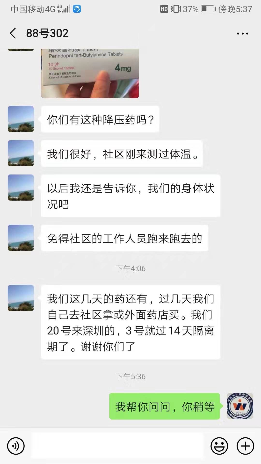 社區(qū)網(wǎng)格員與居家隔離人員“一對(duì)一”微信服務(wù),提供幫助。