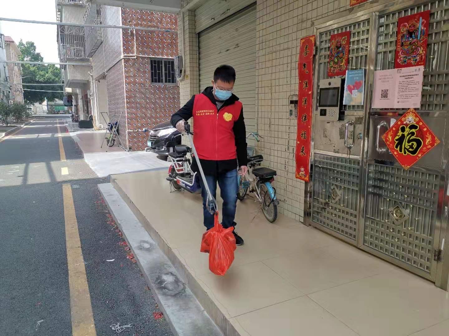 社區(qū)黨委副書(shū)記黃幼專(zhuān)同志帶頭為居民隔離人員消毒垃圾并處理垃圾