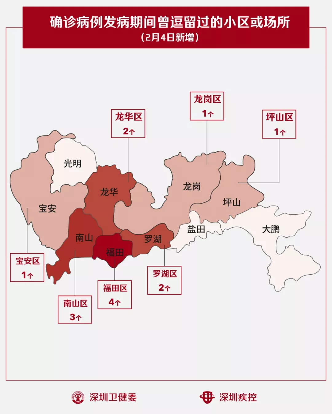 2月4日,疾控專業(yè)人員通過最新的流行病學(xué)調(diào)查確認,深圳新增14個小區(qū)(場所),有新確診的病人在出現(xiàn)病征期間曾經(jīng)逗留。