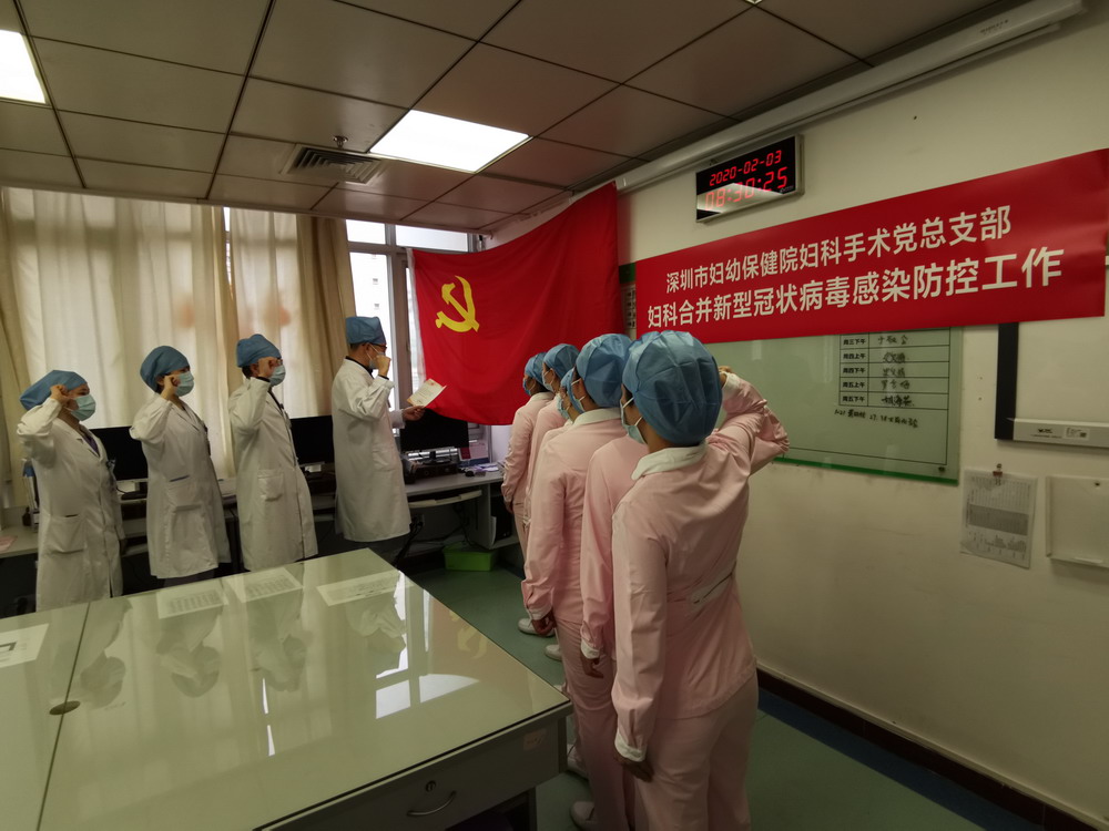婦科黨總支自愿參加婦科合并新冠防控病區(qū)相關工作的黨員們,在留觀隔離的病區(qū)重溫入黨誓詞