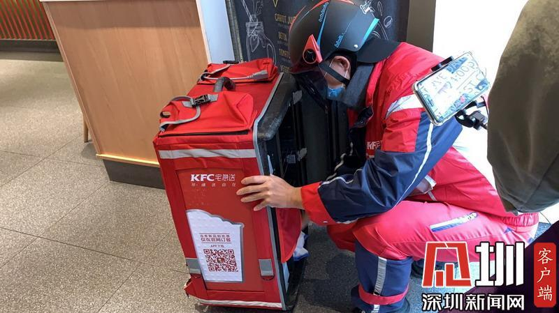 集體用餐配送服務(wù)平臺(tái)的餐飲企業(yè)——肯德基,外賣小哥每次送餐后均對(duì)外賣柜子進(jìn)行消毒。