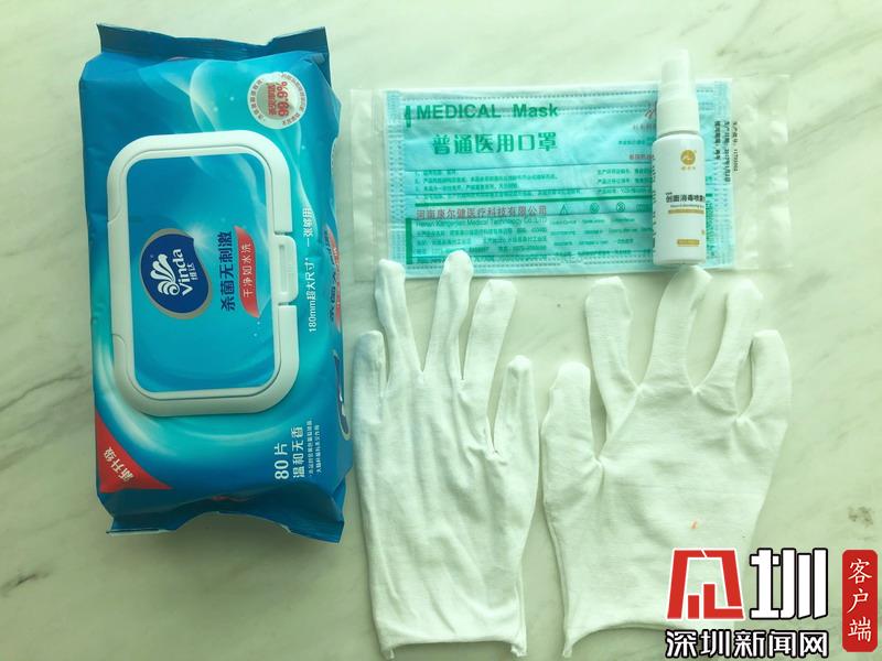 復(fù)工佩戴的物品:消毒紙巾、消毒噴霧、口罩、一次性手套