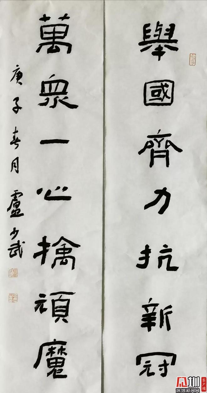 見圳客戶端.深圳新聞網(wǎng)訊(記者 鄭創(chuàng)彬)連日來,新型冠狀病毒肺炎疫情牽動著每一個國人的心。2月11日,記者從鹽田區(qū)文聯(lián)獲悉,鹽田區(qū)書法家協(xié)會的成員們,雖不能和醫(yī)務(wù)工作者等直奔前線,卻無不心系疫情,利用自己手中的筆墨,以文藝作品鼓舞士氣,創(chuàng)作了許多凝聚力量的佳作,為打贏疫情防控阻擊戰(zhàn)加油助威。