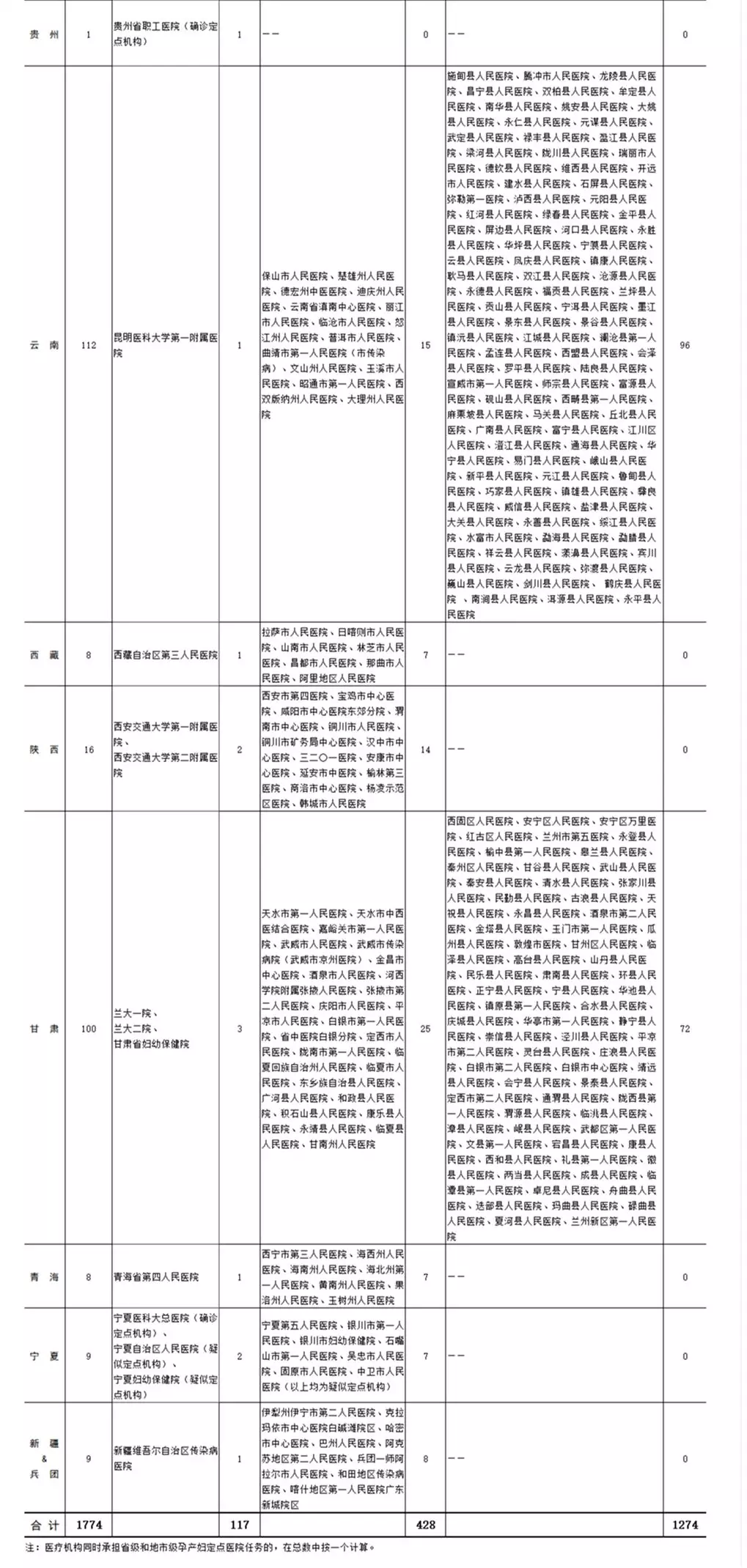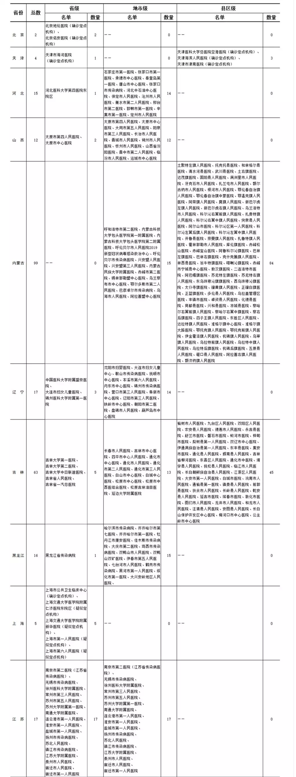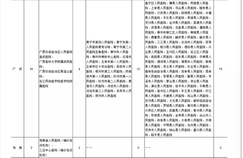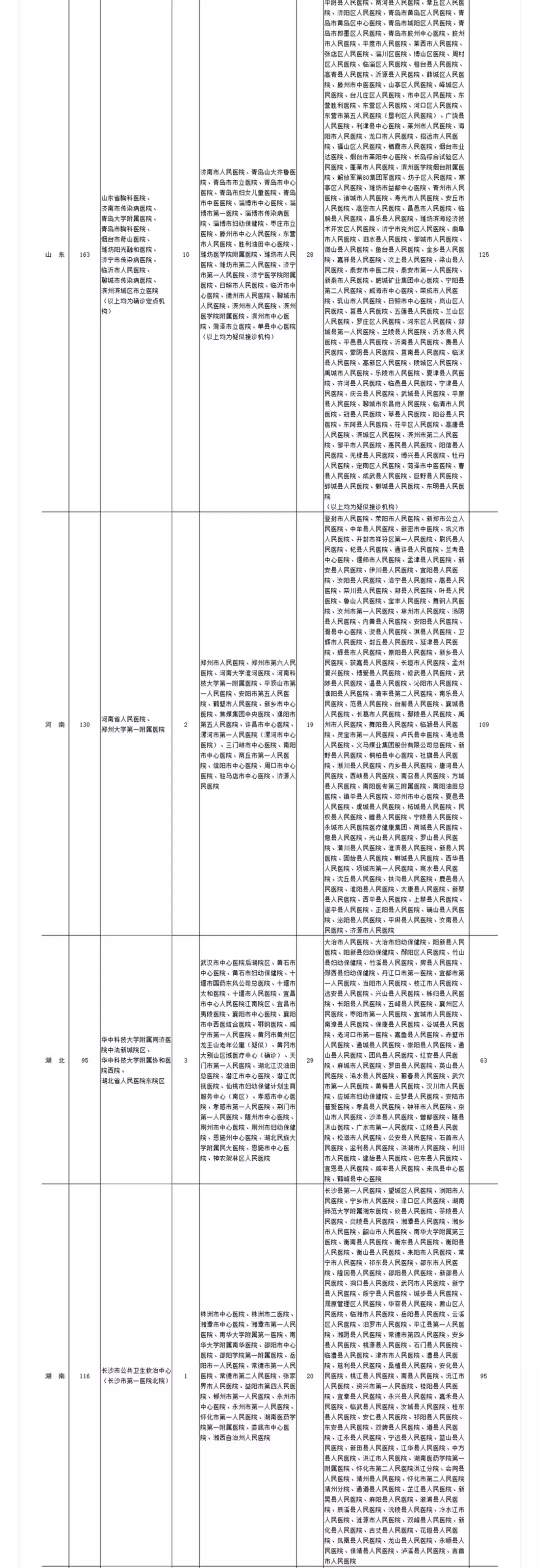 各?。▍^(qū)、市)新型冠狀病毒感染疑似或確診孕產(chǎn)婦產(chǎn)檢和住院分娩定點醫(yī)院(截至2020年2月11日)