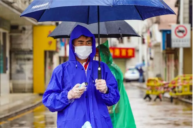 除了他們,還有很多人也冒雨奮戰(zhàn)在抗疫第一線(xiàn):防控檢疫員、社區(qū)網(wǎng)格員、義工、快遞小哥等等