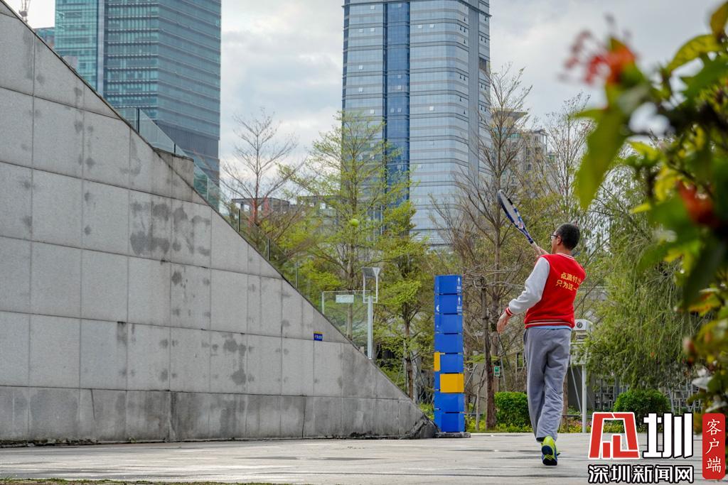 少年宮附近一位市民獨自對著墻壁練習網(wǎng)球