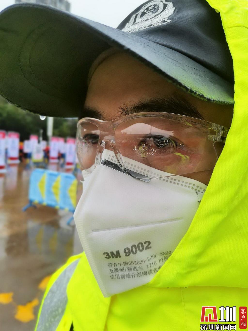 雨中執(zhí)勤的深圳交警民警。