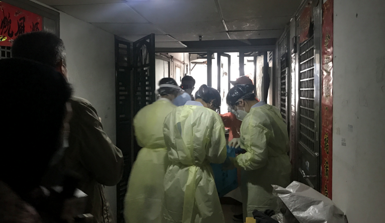 暴雨來臨,深圳交警民警在檢疫點安裝雨棚。