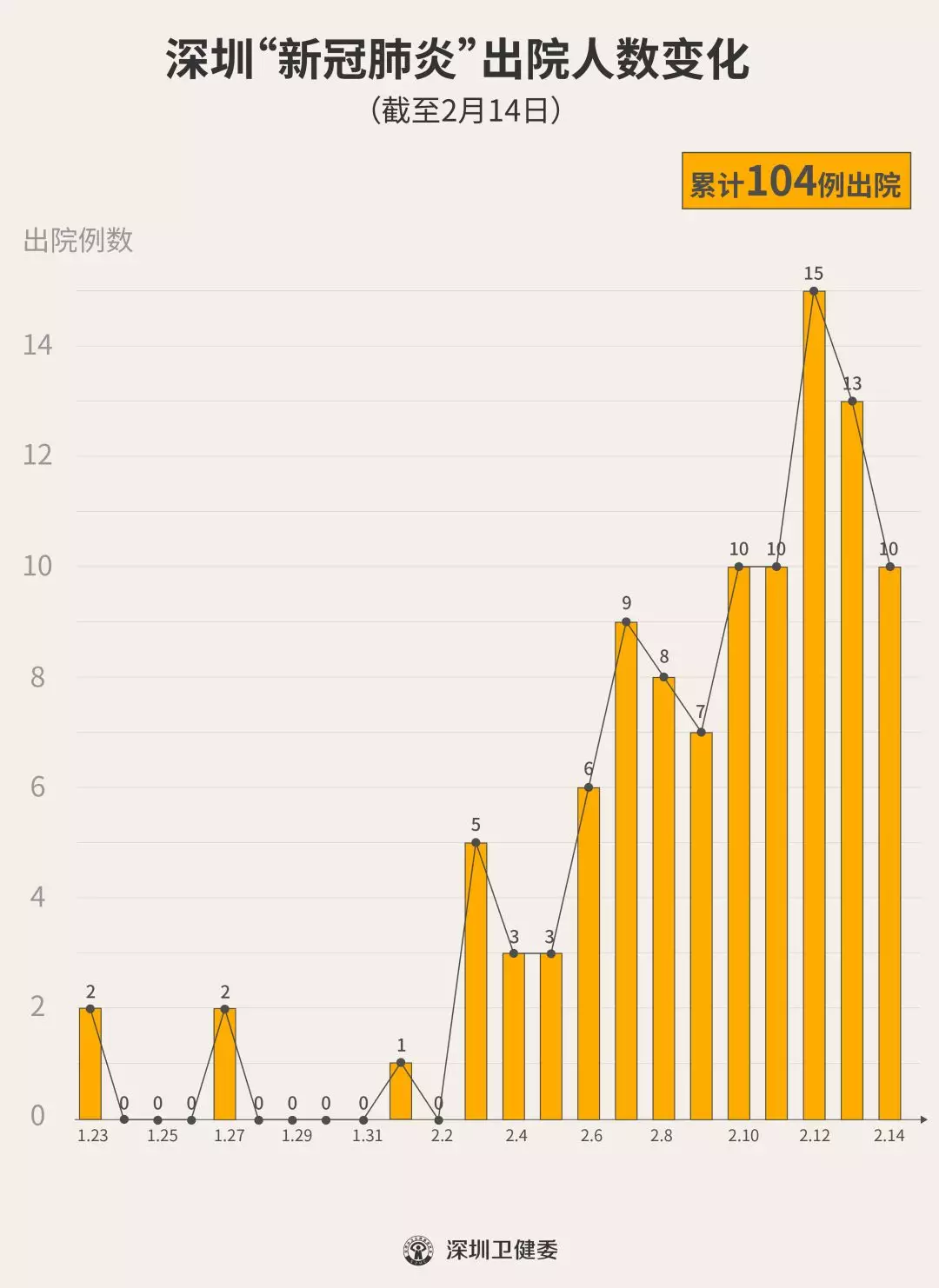 2月14日下午,經(jīng)專家組會診,深圳再有10名新型冠狀病毒肺炎確診患者出院,累計(jì)達(dá)104人。