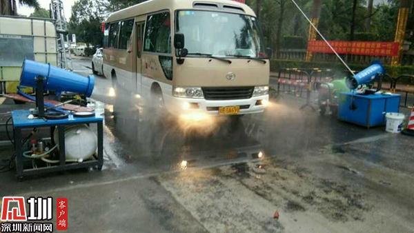 園區(qū)在車(chē)輛入口處嚴(yán)格對(duì)每一輛車(chē)進(jìn)行消毒處理。