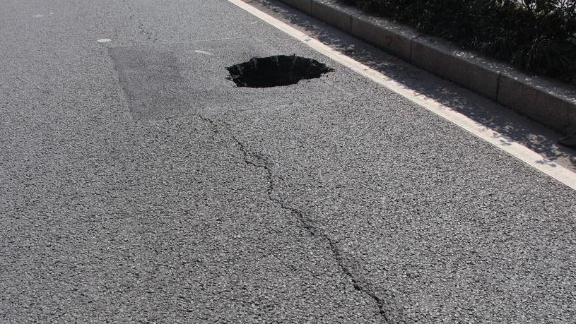市民廣場(chǎng)前一輔路驚現(xiàn)直徑一米坑 有 ...