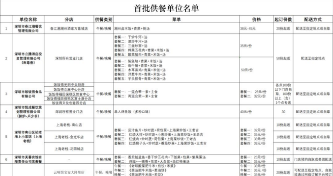 深圳公布79家可提供配送服務(wù)餐飲企 ...