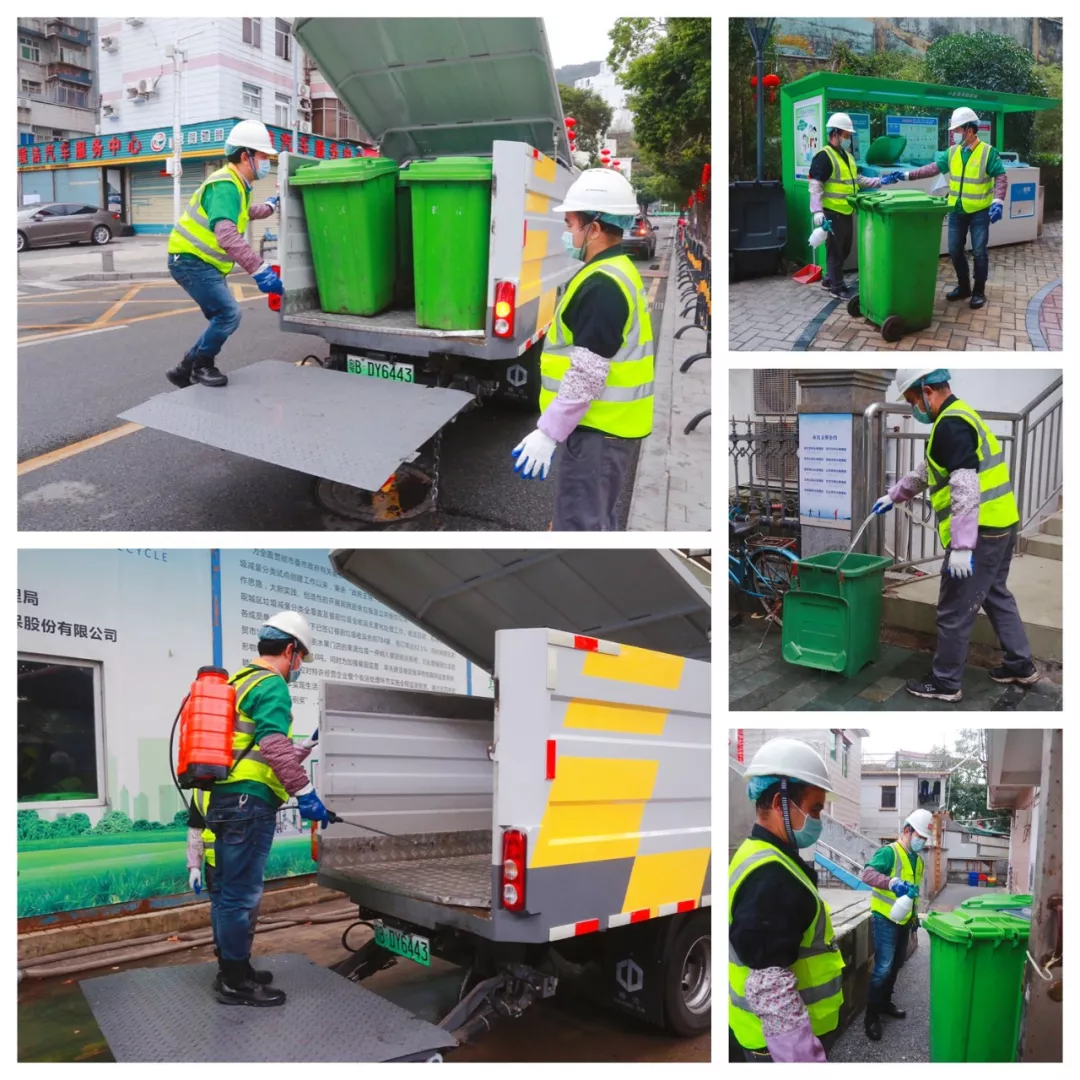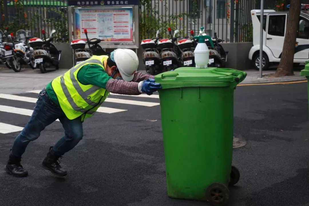 上午7點(diǎn)半,第一個(gè)到崗的田夫珍開(kāi)始測(cè)量體溫,消毒后穿上印有“深能環(huán)?!钡鸟R甲,戴上安全帽,檢查車(chē)輛消殺情況。8點(diǎn)整,他和14名同事一起出發(fā),分赴鹽田7條線(xiàn)路,開(kāi)始和餐廚垃圾打交道。