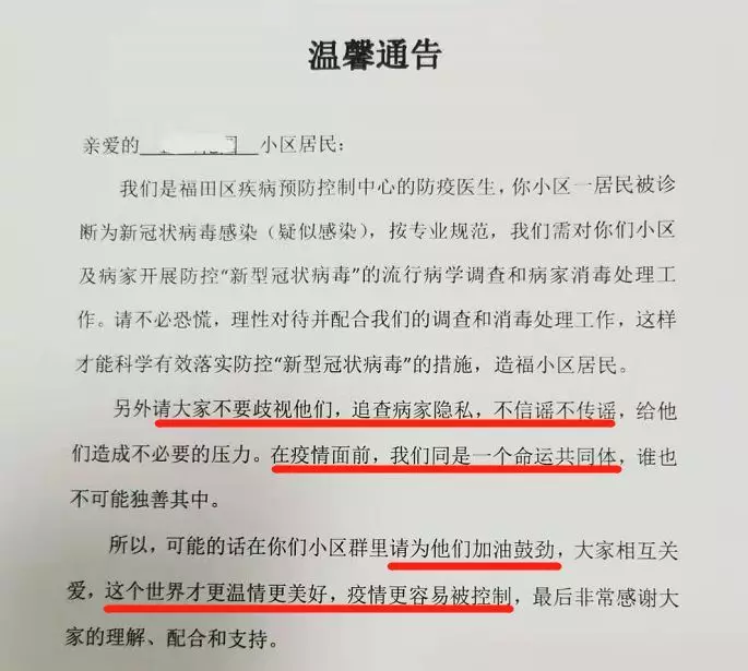 深圳南山一小區(qū)單元出入口,隔著玻璃看去,電梯上的封條寫著“隔離不隔情、隔疫不隔愛”的溫馨提示。