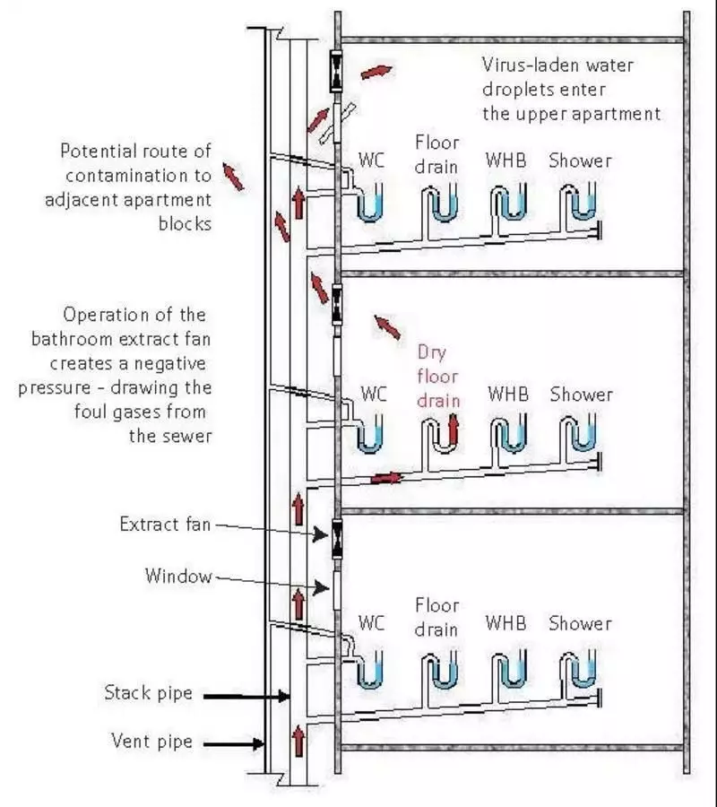 2003年SARS期間,香港“淘大花園事件”備受矚目,目前對該事件的病毒傳播方式復(fù)盤,可能由于該樓棟管道設(shè)計(jì)存在隱患。
