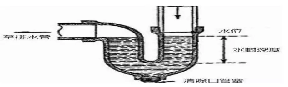 在建筑排水管道中,水封指的是設(shè)在衛(wèi)生器具排水口下,用來抵抗排水管內(nèi)氣壓差變化,防止排水管道系統(tǒng)中氣體竄入室內(nèi)的一定高度的水柱,通常用存水彎來實(shí)現(xiàn)。