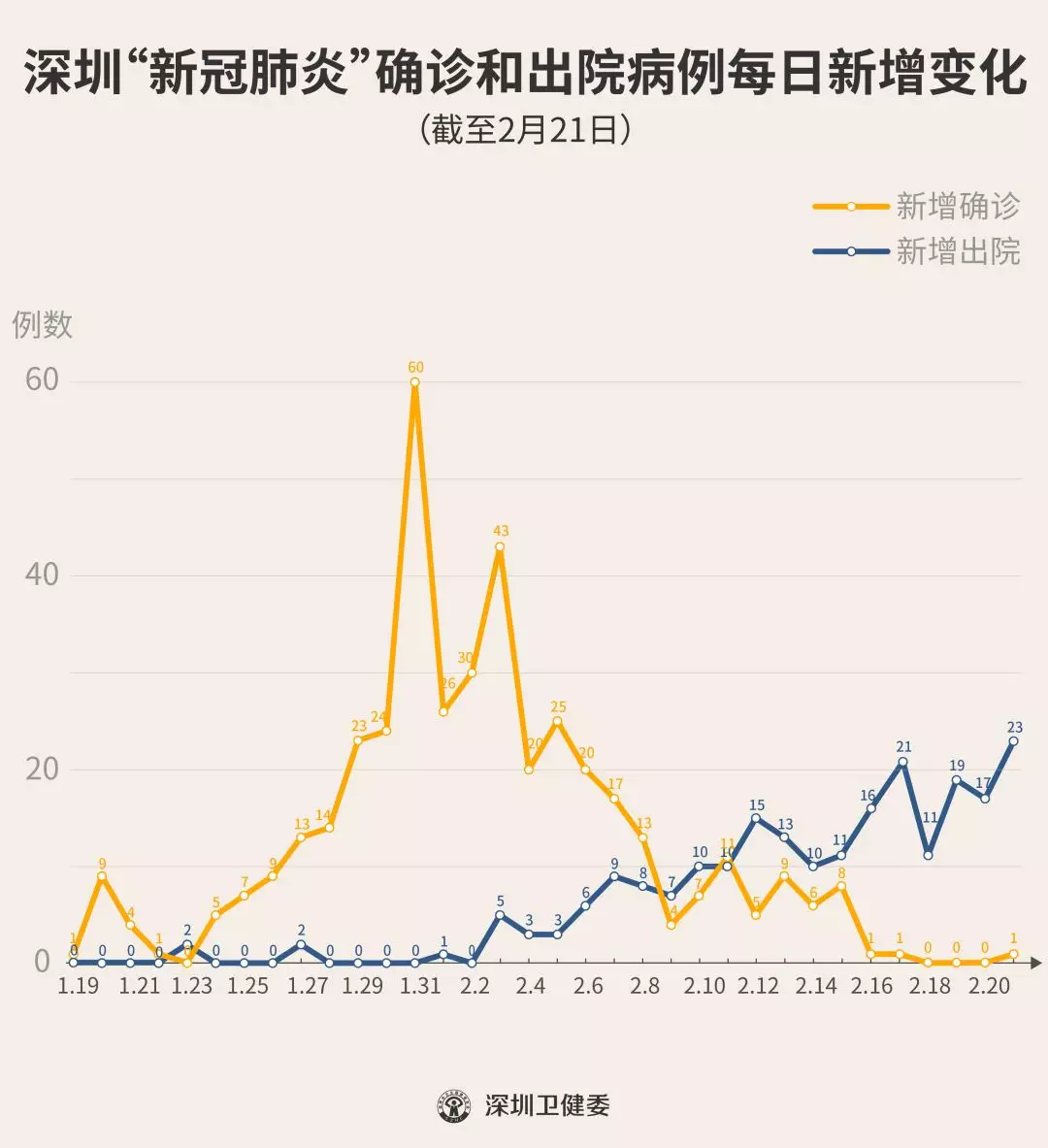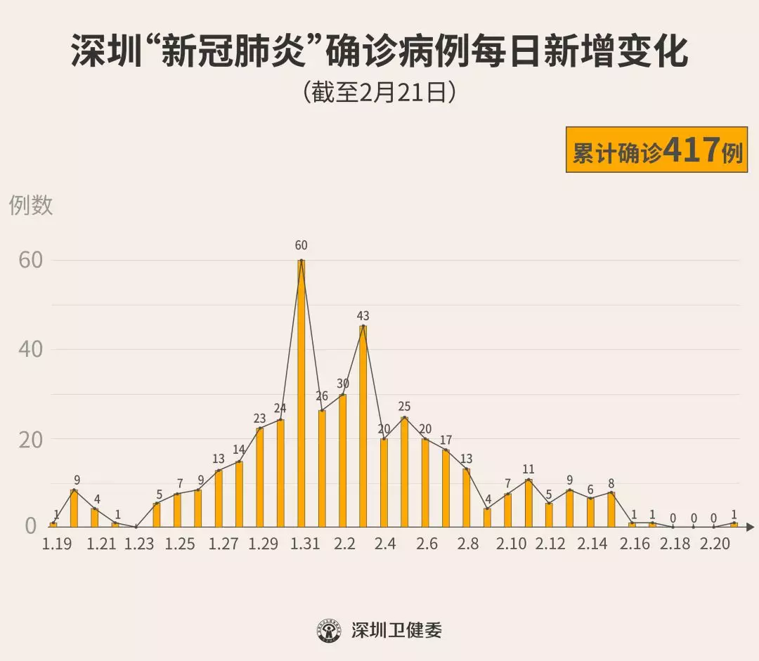 截至2月21日24時,深圳累計報告“新冠肺炎”確診病例417例。2月21日當天全市新增確診病例1例(個案詳情今晚公布)。 ▲新增出院病例已超過新增確診病例 累計報告確診病例中,男性197例、女性220例。 按照病例管理地區(qū)劃分,南山區(qū)87例、福田區(qū)81例、龍崗區(qū)71例、寶安區(qū)62例、龍華區(qū)34例、羅湖區(qū)32例、光明區(qū)11例、坪山區(qū)7例、鹽田區(qū)6例、大鵬新區(qū)2例、其他(指由機場、車站、碼頭、關(guān)口、路卡等直接送往定點醫(yī)院的)24例。 目前,重癥10例、危重癥9例,死亡2例,累計出院222例。 193例確診病例均在深圳市第三人民醫(yī)院隔離治療。 202例密切接觸者正在接受醫(yī)學觀察。 資料來源:深圳市疾控中心、深圳市衛(wèi)健委、廣東省衛(wèi)健委