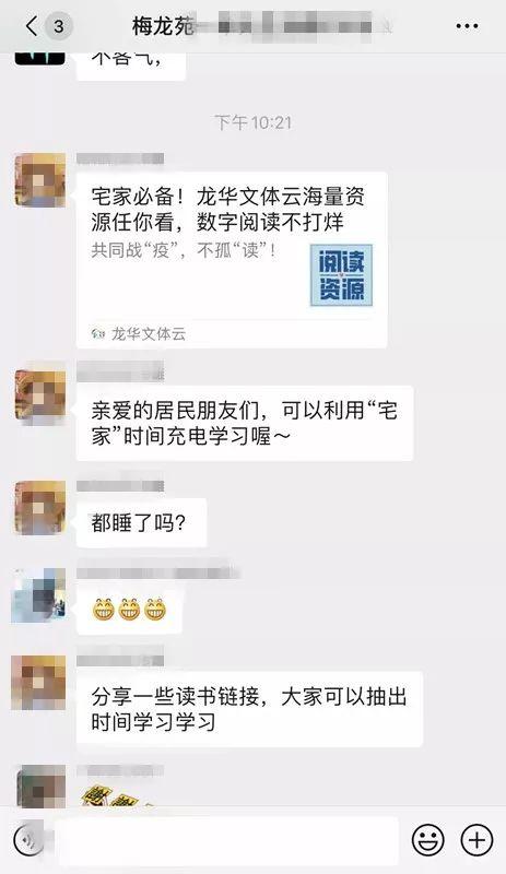 為緩解居家隔離人員情緒,豐富其精神文化活動(dòng),龍華街道還引導(dǎo)居民使用“龍華文體云”提供的免費(fèi)數(shù)字資源庫(kù)進(jìn)行線上學(xué)習(xí),利用“宅家”時(shí)間“充電”,滿足居家閱讀需求,豐富精神世界,幫助居民充實(shí)快樂宅在家。
