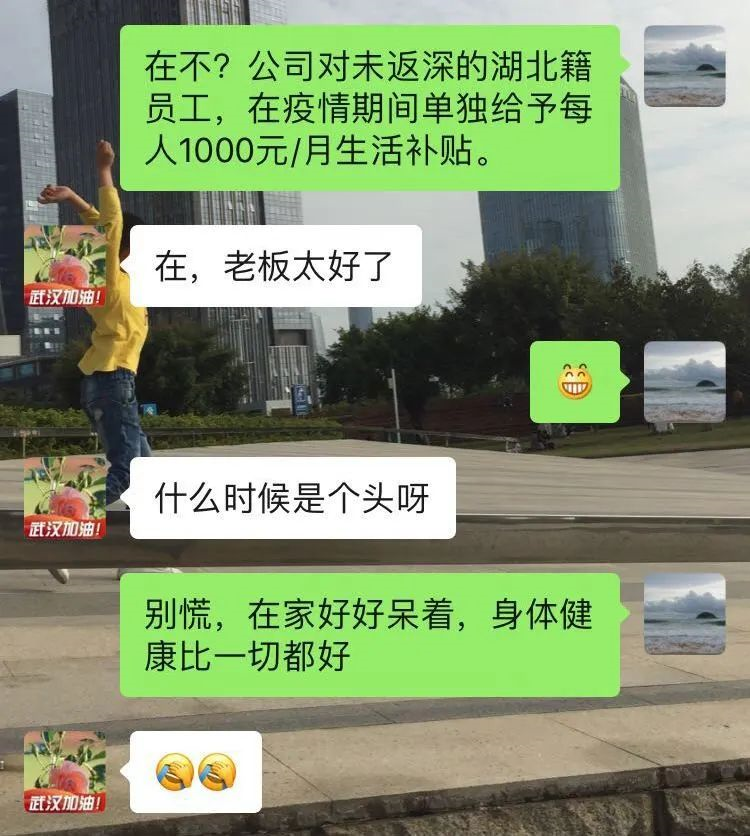 “工資已經(jīng)全額到賬,由于疫情影響,針對(duì)不能返程的湖北籍員工,每人額外發(fā)放1000元生活補(bǔ)貼。”2月17日,身在湖北公安的晏君收到公司通知后,懸著的心終于放了下來(lái)。晏君是深圳坤弘印務(wù)有限公司倉(cāng)儲(chǔ)部記賬員,她坦言,公司發(fā)放的工資和生活補(bǔ)助是“雪中送炭”,過(guò)去近一個(gè)月心里確實(shí)很忐忑,既擔(dān)心沒(méi)工資發(fā),又害怕丟了工作,如今不用擔(dān)心經(jīng)濟(jì)來(lái)源了?!瓣P(guān)鍵時(shí)候,公司不僅沒(méi)有拋棄我們,還給我們諸多關(guān)愛(ài)。我發(fā)現(xiàn)我更愛(ài)公司、更愛(ài)我的工作了。”