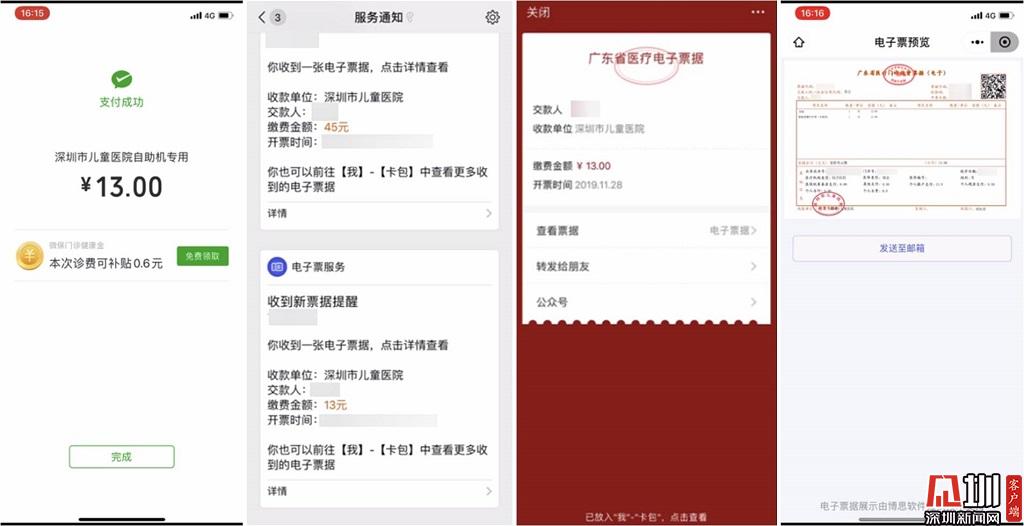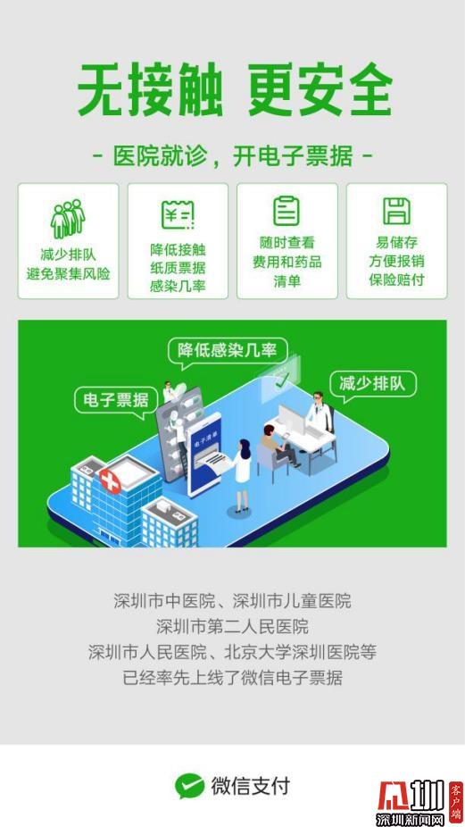 見圳客戶端·深圳新聞網(wǎng)2020年2月24日訊(見圳客戶端、深圳新聞網(wǎng)記者 陳婕)減少接觸是對抗擊疫情的最大支持。日前,微信聯(lián)合博思軟件在深圳市中醫(yī)院、深圳市兒童醫(yī)院、深圳市第二人民醫(yī)院、深圳市人民醫(yī)院、北京大學(xué)深圳醫(yī)院等醫(yī)院首期上線了醫(yī)療電子票據(jù),為患者提供“就診繳費后通過微信領(lǐng)取電子票據(jù)”的服務(wù),減少接觸人群聚集及紙質(zhì)票據(jù)交叉感染的風(fēng)險。