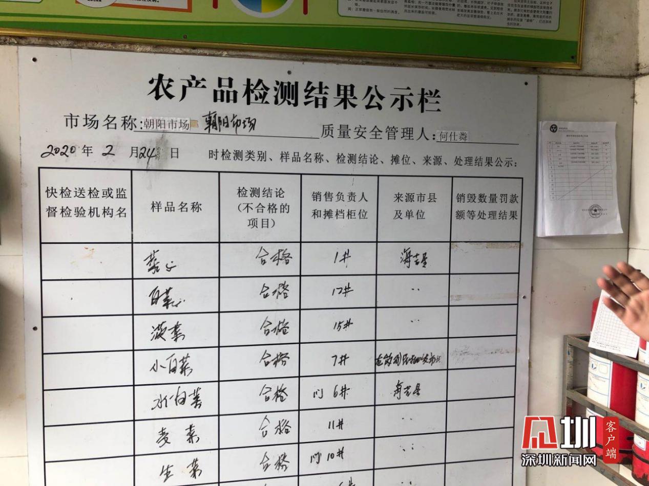 “朝陽肉菜市場從2005年開始開辦,市場占地面積為2480平方米,建筑面積和經(jīng)營面積均為2220平方米,目前市場經(jīng)營攤檔共有82檔。市場附近有三個(gè)社區(qū),每天有將近兩萬居民都會來這個(gè)市場采購食材。市場設(shè)有農(nóng)殘檢測設(shè)施,每天都會對進(jìn)貨的蔬菜進(jìn)行農(nóng)殘檢測并公示?!笔袌鲐?fù)責(zé)人說道。