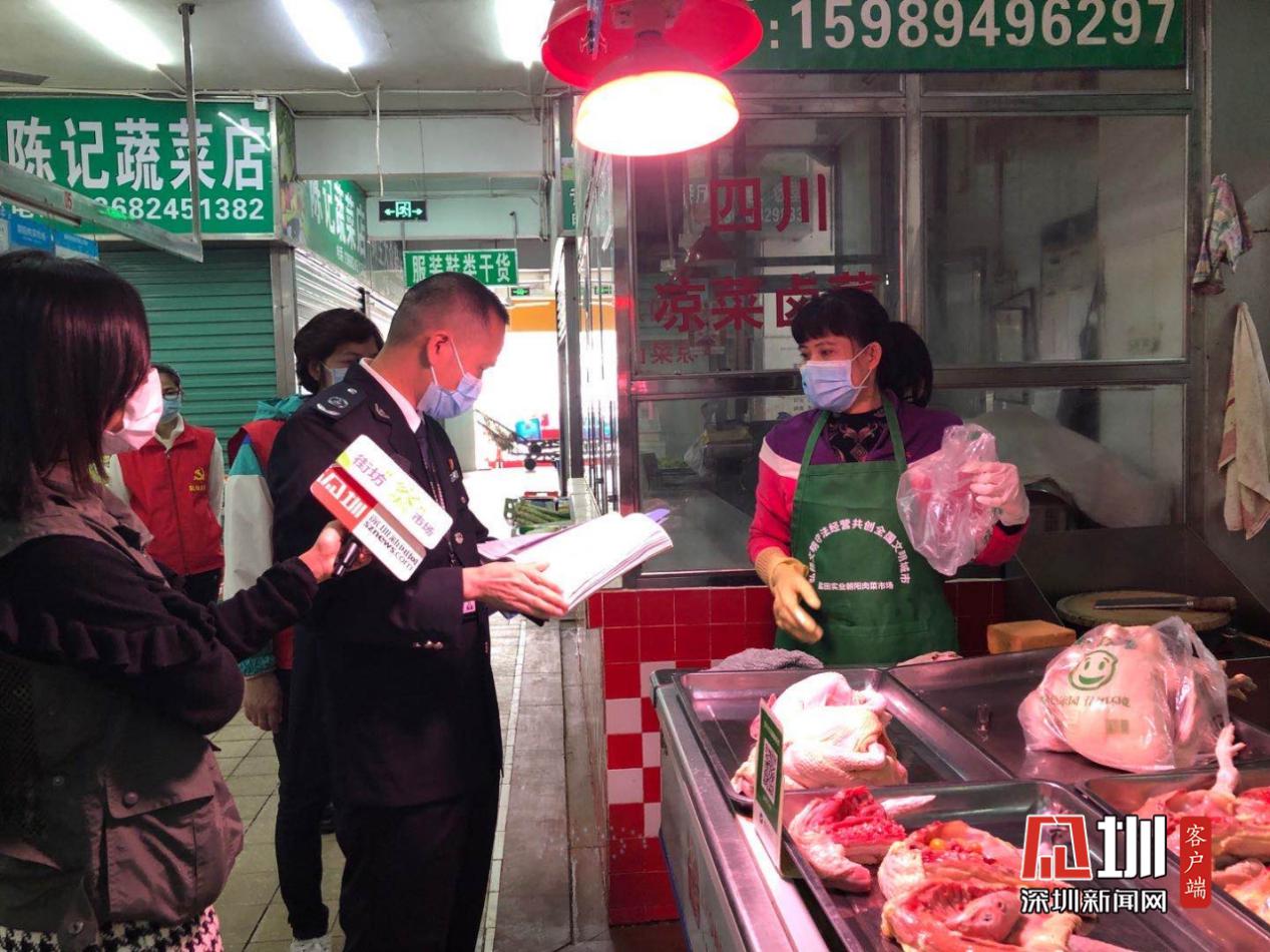 深圳市市場監(jiān)管局鹽田所執(zhí)法人員藍(lán)華榮表示,朝陽肉菜市場是從年初二開始營業(yè)的,鹽田所從年初二開始,每天都會對這個(gè)市場進(jìn)行檢查。目前除了日常檢查之外,還會對市場的防疫防控工作進(jìn)行檢查?!耙咔槠陂g主要檢查市場是否有售賣野味和商戶是否有佩戴口罩,當(dāng)?shù)谝淮伟l(fā)現(xiàn)商戶沒有戴口罩時(shí),執(zhí)法人員會發(fā)放一份責(zé)令改正通知書給商戶,第二次還被發(fā)現(xiàn)沒有戴口罩的話,市監(jiān)部門將通知公安部門?!眻?zhí)法人員介紹道。