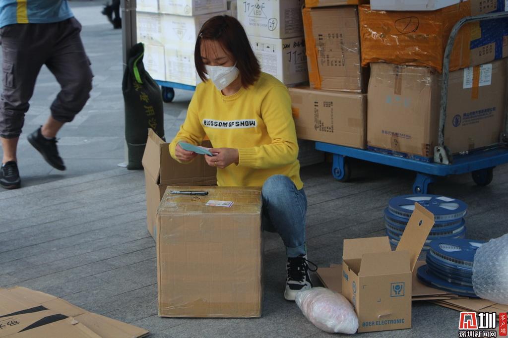 “早上坐地鐵四號線過來感覺人還是很多,我還專門戴了兩個口罩?!凹易↓埲A區(qū)的劉女士是華強北的一位商家,她正在清點剛到的一批貨物。
