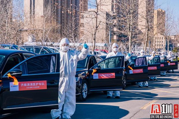 山東濟南滴滴醫(yī)護車隊司機為醫(yī)護人員提供免費接送服務(wù)。