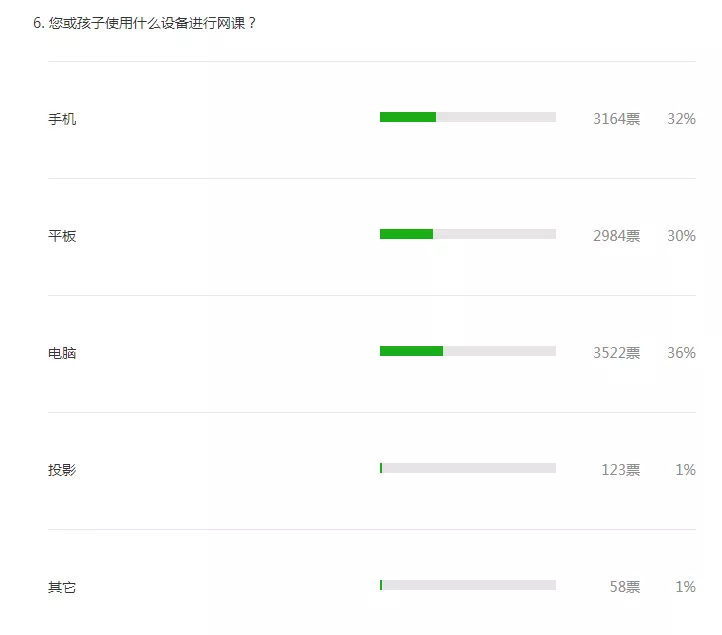 是否擁有相應(yīng)的電子設(shè)備和良好的網(wǎng)絡(luò)是保障網(wǎng)課順利進(jìn)行的基礎(chǔ)。調(diào)查結(jié)果顯示,超過98%的參與者使用手機(jī)、平板或電腦進(jìn)行網(wǎng)課。也有8%的調(diào)查者曾遇到?jīng)]有設(shè)備的問題。